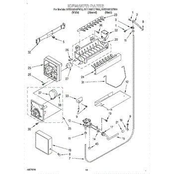 The Ice Container Assembly is an OEM part for Whirlpool refrigerators. This assembly includes the ice bin, where ice is collected, and often features integrated mechanisms or augers for dispensing ice through the refrigerator's door.