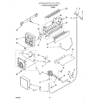 The Ice Container Assembly is an OEM part for Whirlpool refrigerators. This assembly includes the ice bin, where ice is collected, and often features integrated mechanisms or augers for dispensing ice through the refrigerator's door.