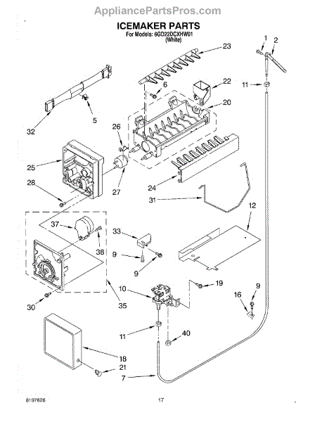 Parts for Whirlpool 6GD22DCXHW01: 11 - Ice Maker Parts