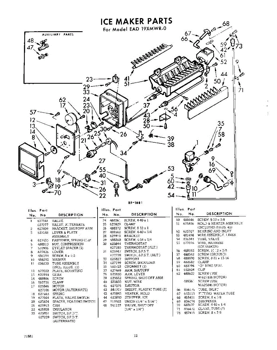 Parts for Whirlpool EAD19XMWR0: 12 - Ice Maker Parts