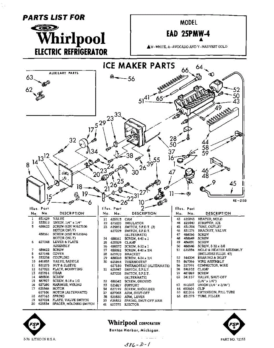 Parts for Whirlpool EAD25PMW4: 01 - Ice Maker Parts