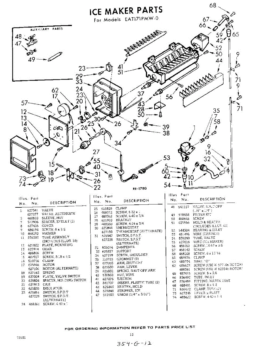 Parts for Whirlpool EAT171PMW0: 12 - Ice Maker Parts