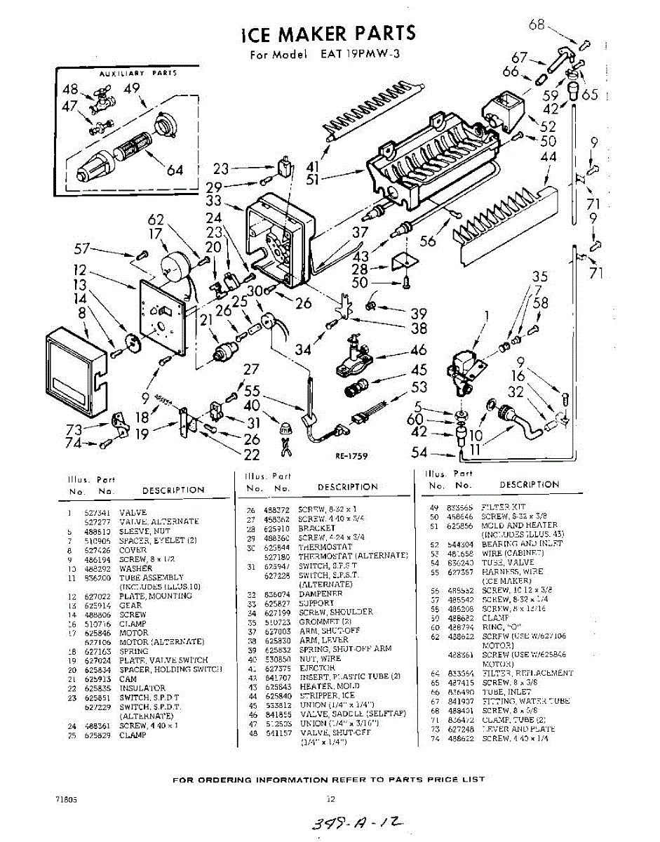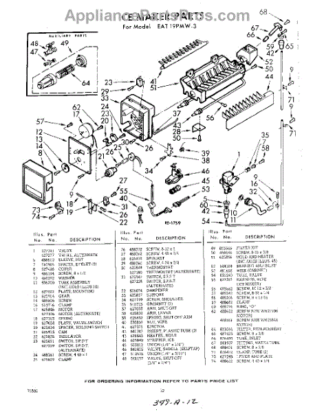Parts for Whirlpool EAT19PMW3: 12 - Ice Maker Parts