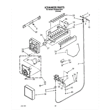 The Ice Container Assembly is an OEM part for Whirlpool refrigerators. This assembly includes the ice bin, where ice is collected, and often features integrated mechanisms or augers for dispensing ice through the refrigerator's door.