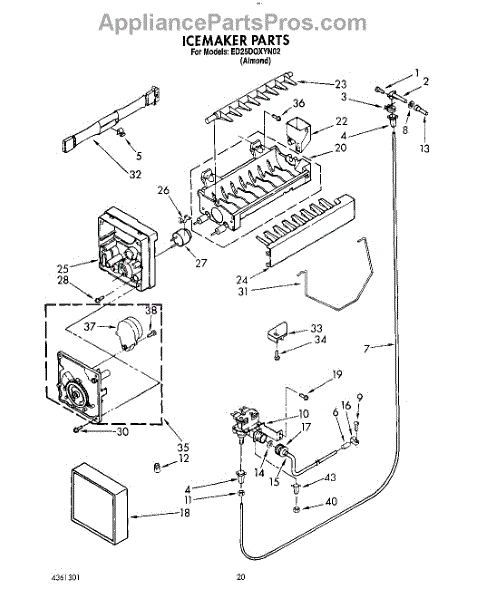 This replacement ejector is the plastic arm that pushes harvested ice cubes out of the ice mold and into the storage bin, helping restore proper ice ejection and reduce ice that sticks inside the tray. What it does: