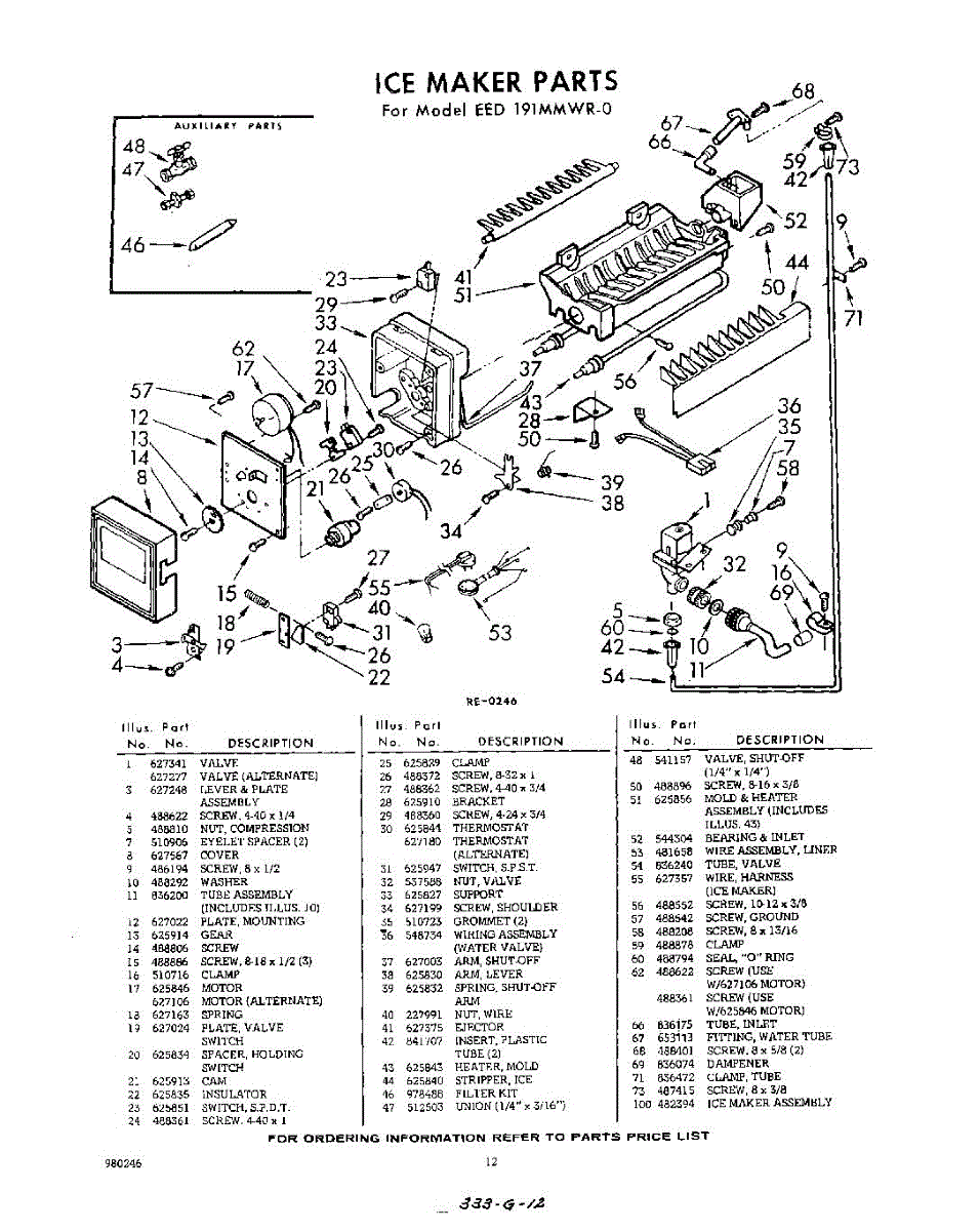 Parts for Whirlpool EED191MMWR0: 12 - Ice Maker Parts