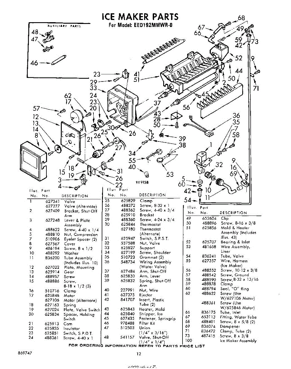 Parts for Whirlpool EED192MMWR0: 12 - Ice Maker Parts