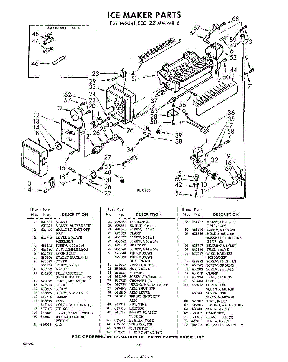 Parts for Whirlpool EED221MMWR0: 12 - Ice Maker Parts