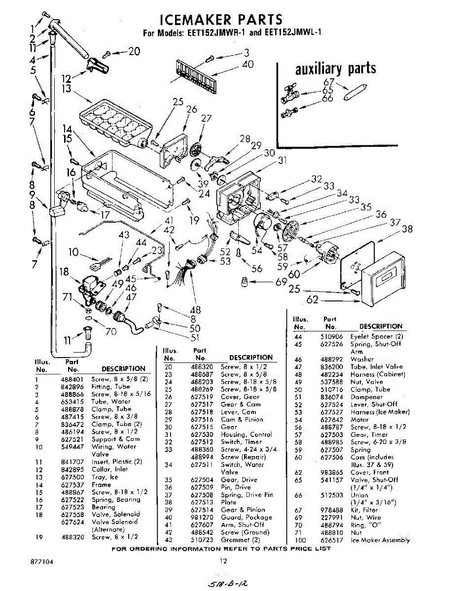 Parts for Whirlpool EET152JMWR1: 12 - Ice Maker Parts
