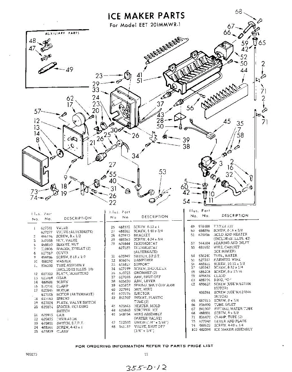 Parts for Whirlpool EET201MMWR1: 12 - Ice Maker Parts