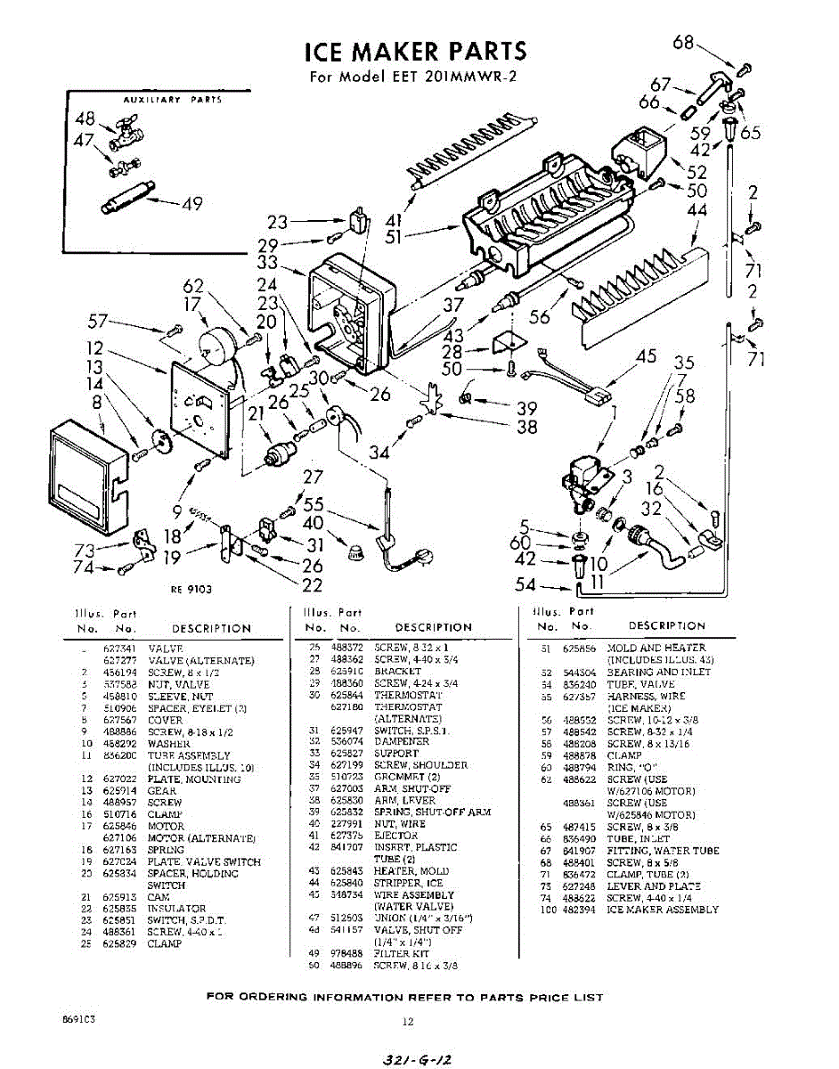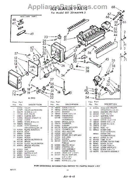 Parts for Whirlpool EET201MMWR2: 12 - Ice Maker Parts