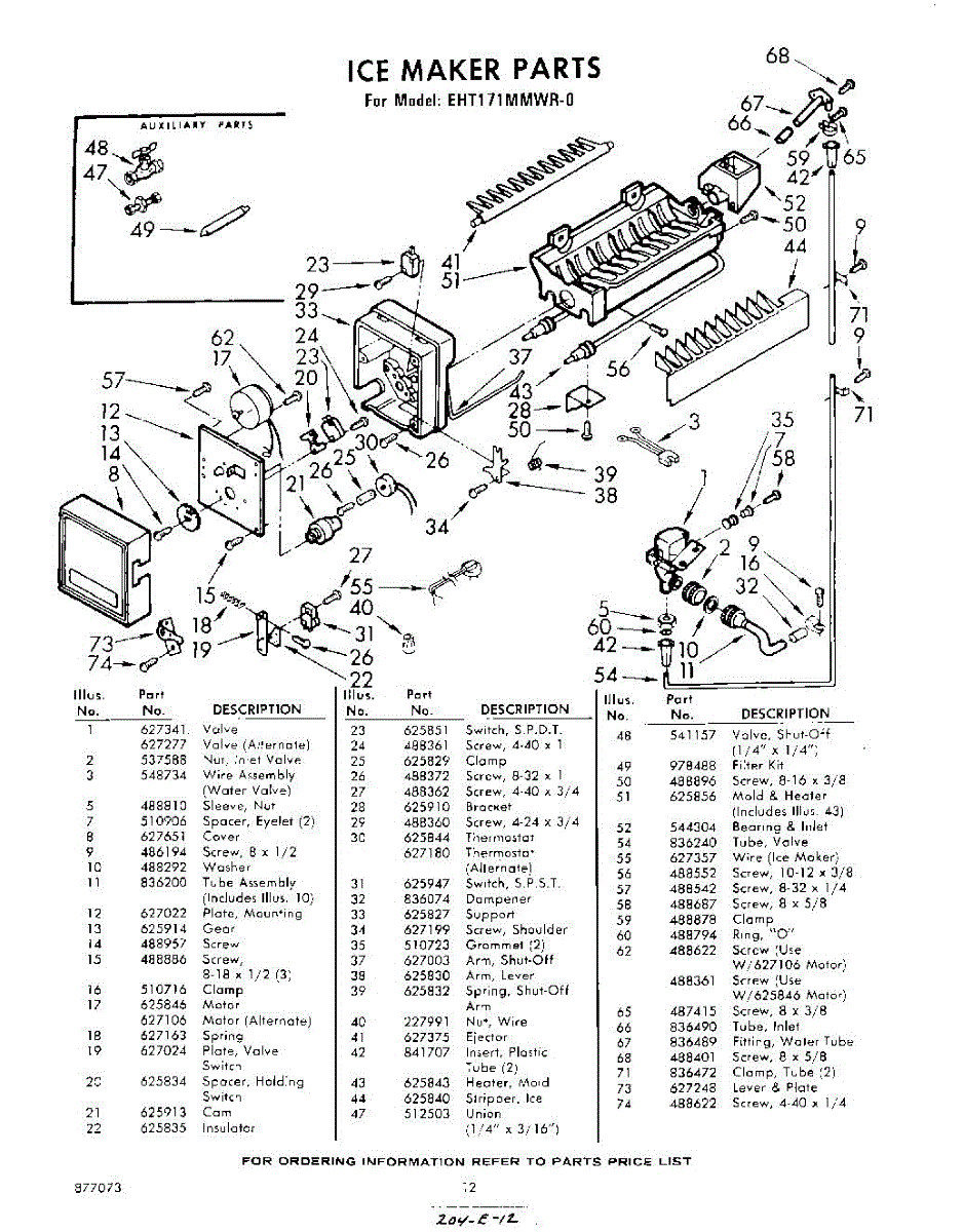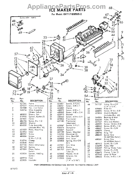 Parts for Whirlpool EHT171MMWR0: 12 - Ice Maker Parts