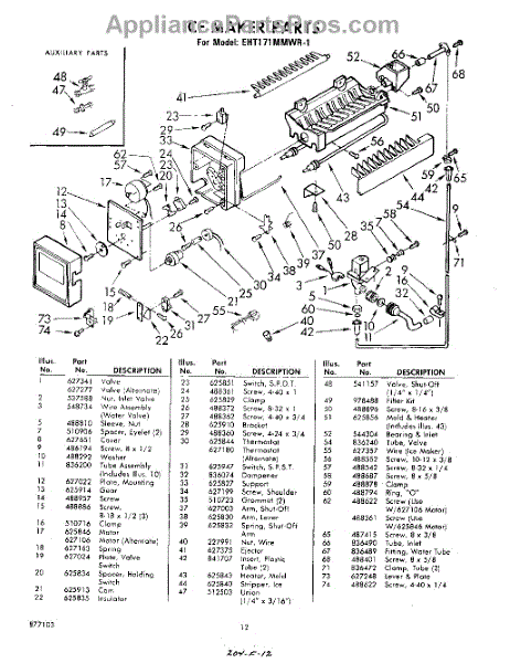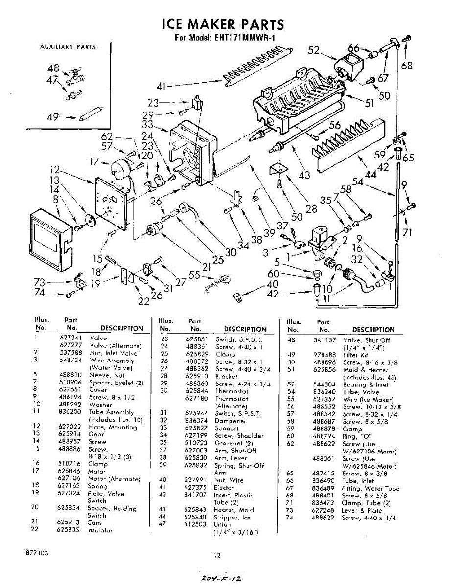 Parts for Whirlpool EHT171MMWR1: 12 - Ice Maker Parts
