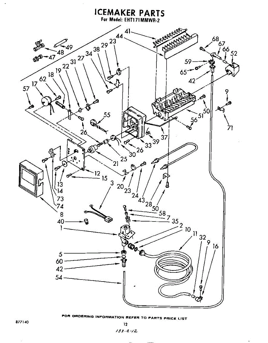 Parts for Whirlpool EHT171MMWR2: 12 - Ice Maker Parts