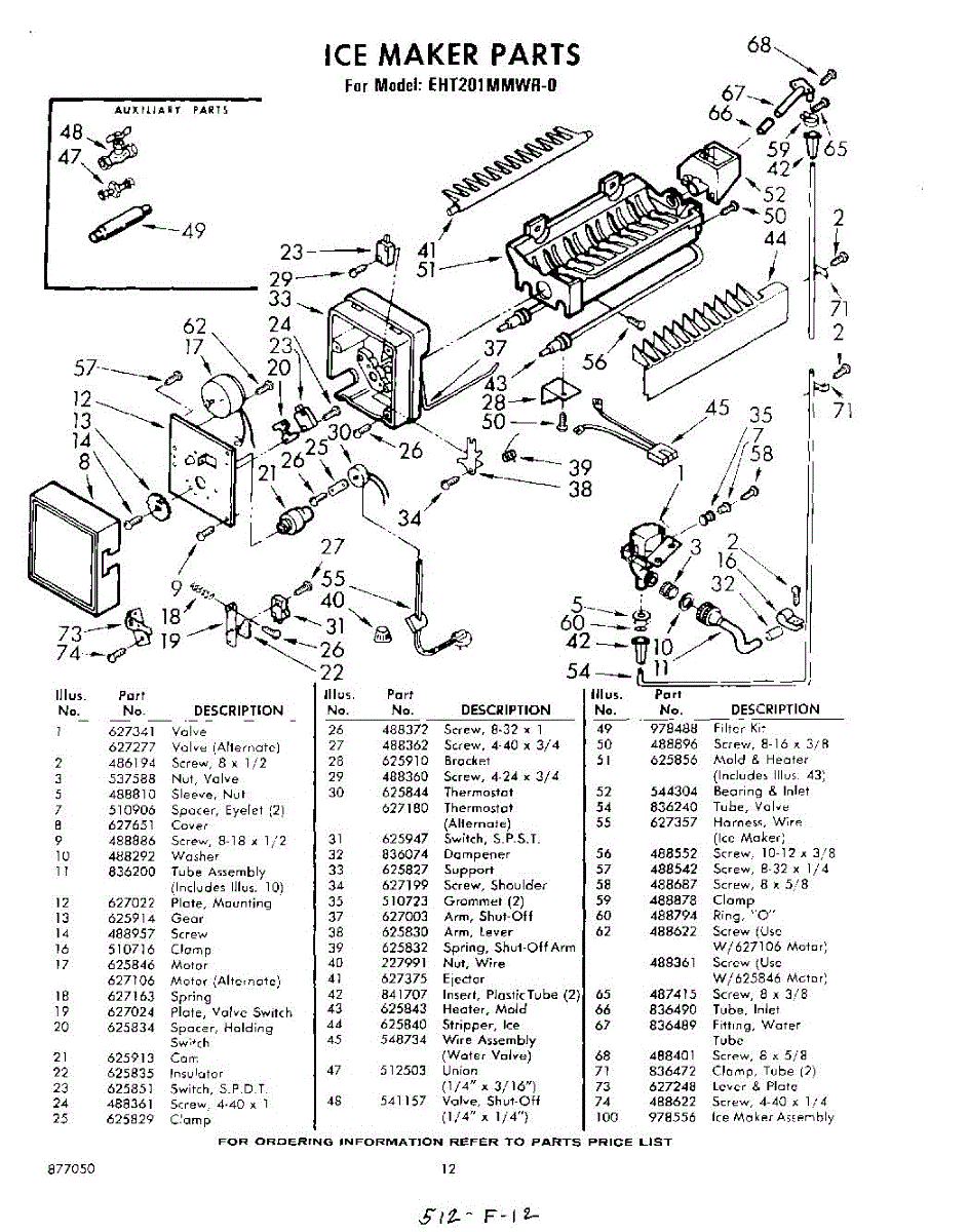 Parts for Whirlpool EHT201MMWR0: 12 - Ice Maker Parts