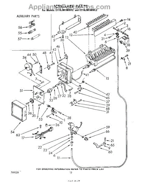 Parts for Whirlpool ET16JM1MWR2: 09 - Ice Maker , Not Illustrated Parts