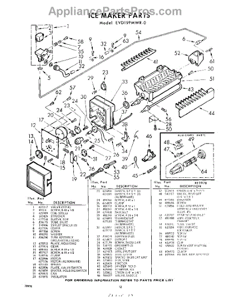 Parts for Whirlpool EVD19PMWR0: 12 - Ice Maker Parts
