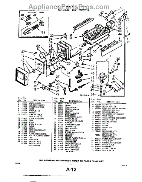 Parts for Whirlpool EXD19NTWR0: 12 - Ice Maker Parts