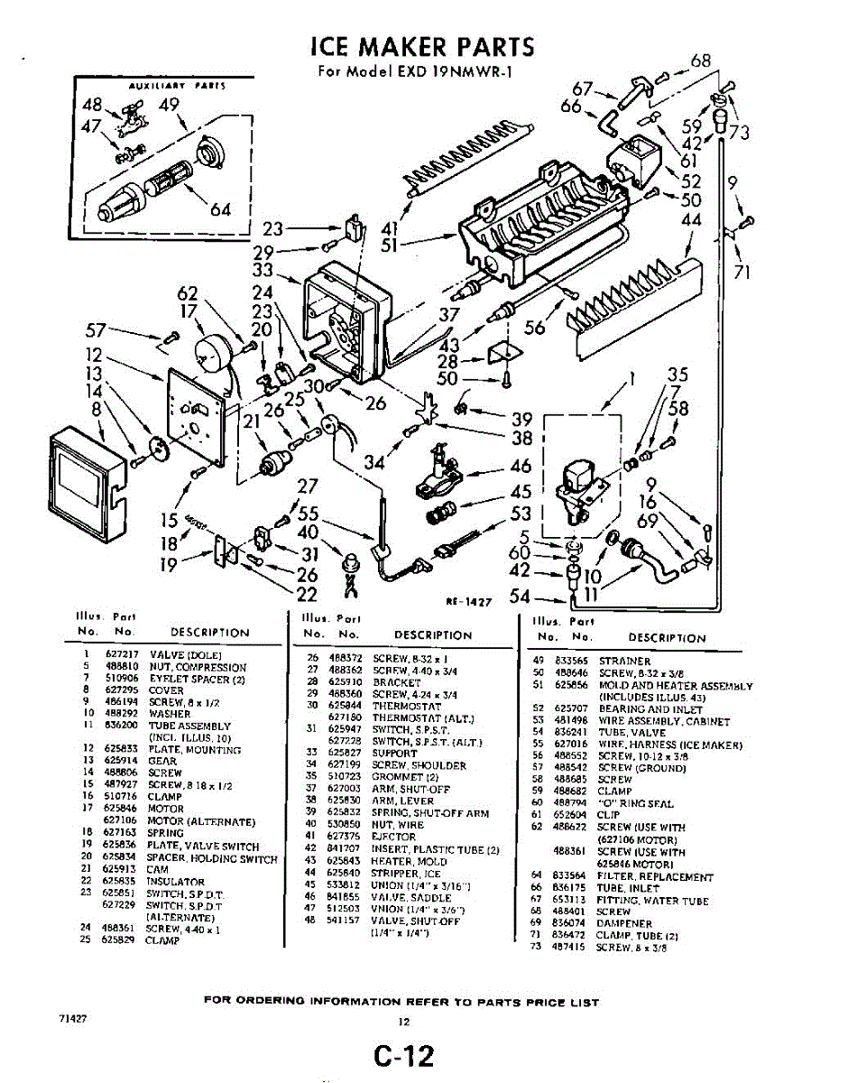 Parts for Whirlpool EXD19NTWR1: 12 - Ice Maker Parts