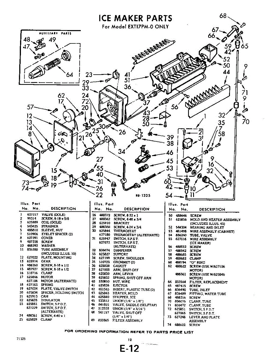 Parts for Whirlpool EXT17PTW0: 12 - Ice Maker Parts