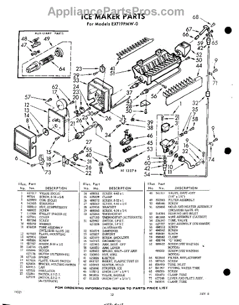Parts for Whirlpool EXT19PTW0: 12 - Ice Maker Parts