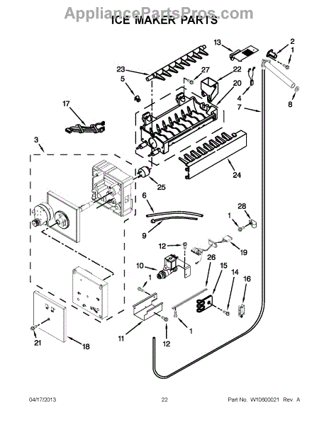 Note: The icemaker does not include the harness or the shut off arm.