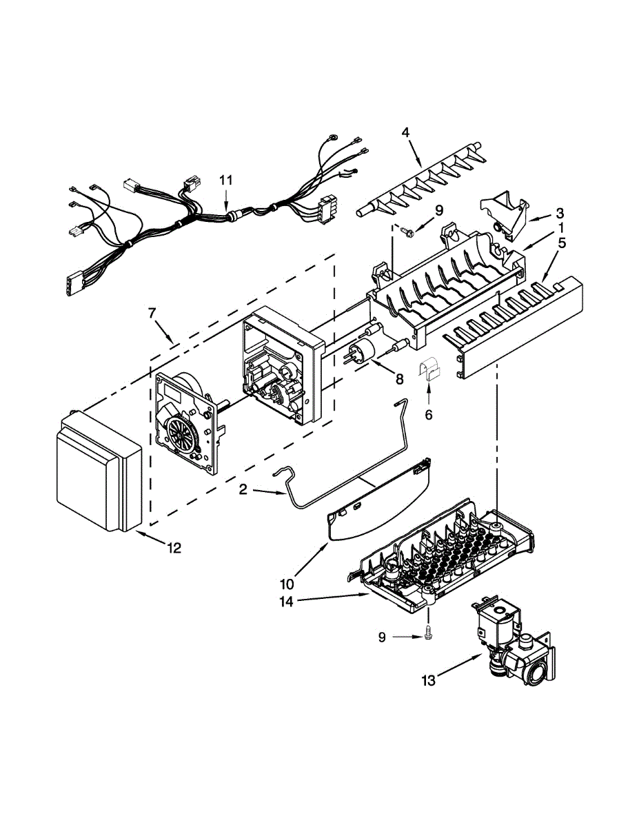NOTE: 8 cube icemaker Includes two wire harnesses and shut off arm.
