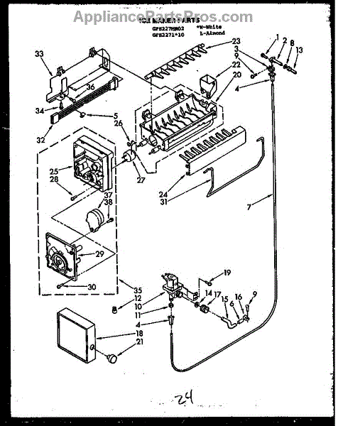 Parts for Caloric GFS2271W10/MN10: Ice Maker Parts (Gfs227 / Mn02) (Gfs2271l10 / Mn10) (Gfs2271w10 / Mn10) Parts