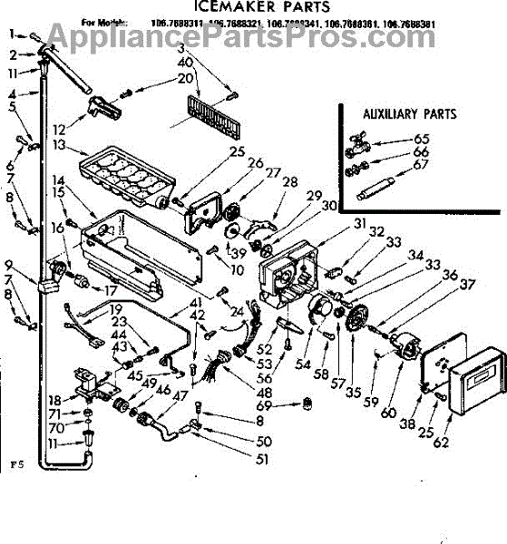Parts for Kenmore 106.7688341 (1067688341, 106 7688341): Icemaker Parts