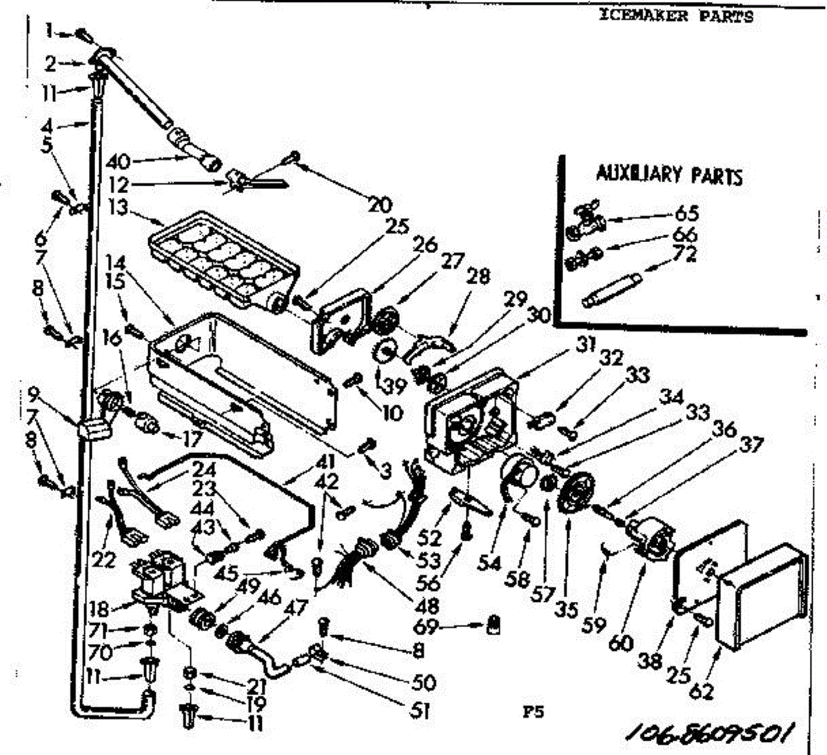 Parts for Kenmore 106.8609591 (1068609591, 106 8609591): Icemaker Parts
