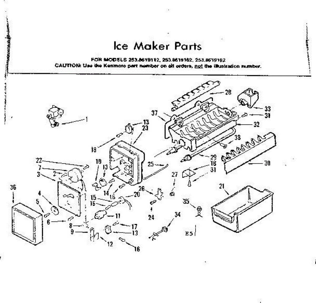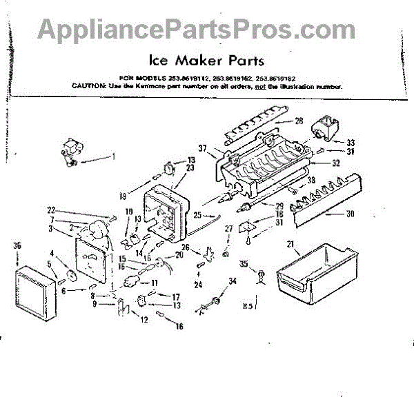 Parts for Kenmore 253.8619162 (2538619162, 253 8619162): Ice Maker Parts