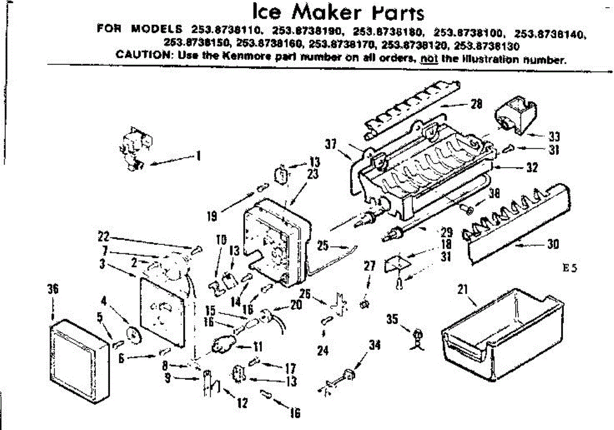 Parts for Kenmore 253.8738100 (2538738100, 253 8738100): Ice Maker Parts