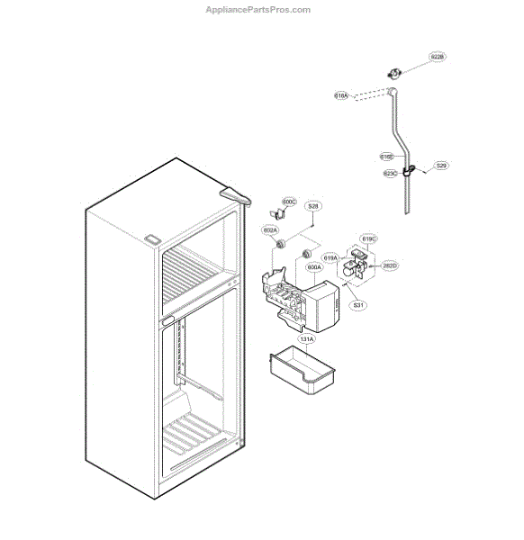 The Drain Pipe Assembly is an OEM replacement part for LG refrigerators. It is a plastic tubing system that collects and removes liquid condensation from evaporator coils. Proper drainage is crucial to minimizing frost buildup and ensuring optimal cooling of food storage areas. Symptoms of a bad drain pipe assembly include: