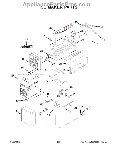 Replacement icemaker assembly that produces, harvests and deposits ice into the freezer bin, restoring automatic ice production so the refrigerator refills the ice bin on its normal cycle. What it does: