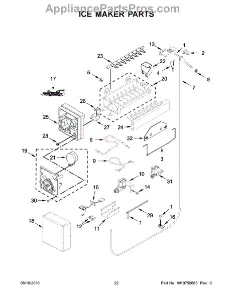 Parts for Kitchenaid KBFN506EPA00: 12 - Ice Maker Parts