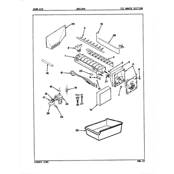 This refrigerator ice bucket stores ice made by the icemaker and positions it for dispensing. Replacing a cracked or warped bin restores smooth ice flow and helps prevent jams, spills, and mess inside the freezer.