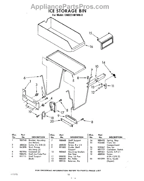 Parts for Whirlpool EHD221MTWR0: 18 - Ice Storage Bin Parts