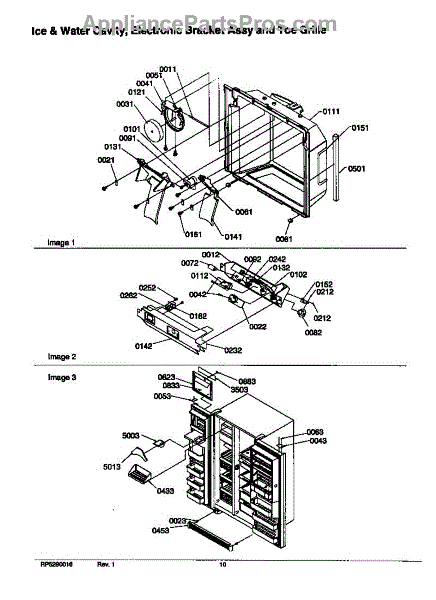 Parts for Amana SRD526SL-P1184802WL: Ice & Water Cavity, Electronic Assy & Toe Grille Parts
