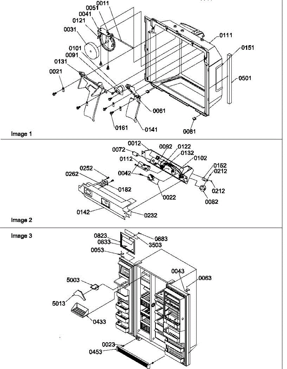 Parts for Amana SRD526TW-P1313401WW: Ice / Water Cavity, Electronic Bracket Assy & Toe Grille Parts