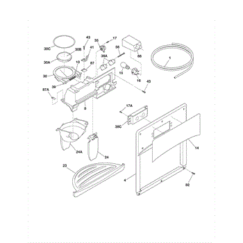 The Dispenser Module Cover is an OEM part for Frigidaire Refrigerator. It is the decorative plastic shroud that fits externally over the ice and water dispenser components.