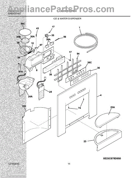 The Ice Chute Door Insulation is an OEM replacement part for Frigidaire refrigerators. It is installed on the ice chute door to prevent warm air infiltration and moisture buildup around the ice dispenser. Causes may include compression or cracking of insulating foam/material from normal use stress. Spills exposing it to liquid are also damaging. Symptoms of defective insulation consist of: