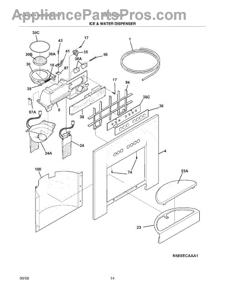 The Ice Chute Door Insulation is an OEM replacement part for Frigidaire refrigerators. It is installed on the ice chute door to prevent warm air infiltration and moisture buildup around the ice dispenser. Causes may include compression or cracking of insulating foam/material from normal use stress. Spills exposing it to liquid are also damaging. Symptoms of defective insulation consist of: