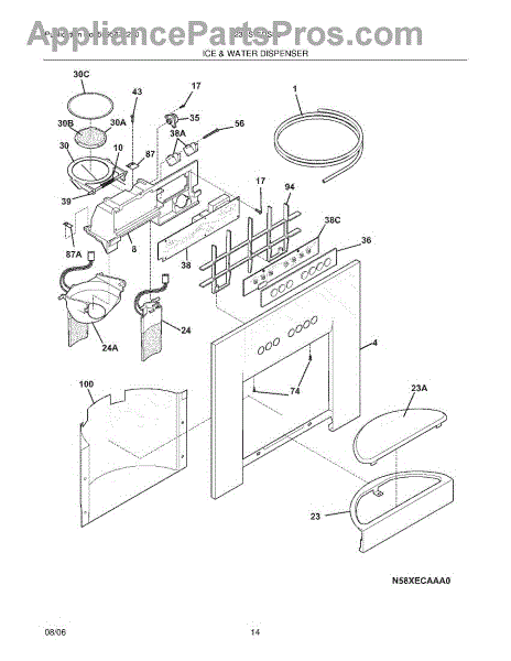 The Ice Chute Door Insulation is an OEM replacement part for Frigidaire refrigerators. It is installed on the ice chute door to prevent warm air infiltration and moisture buildup around the ice dispenser. Causes may include compression or cracking of insulating foam/material from normal use stress. Spills exposing it to liquid are also damaging. Symptoms of defective insulation consist of: