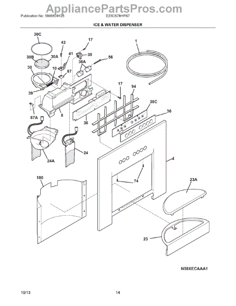The Ice Chute Door Insulation is an OEM replacement part for Frigidaire refrigerators. It is installed on the ice chute door to prevent warm air infiltration and moisture buildup around the ice dispenser. Causes may include compression or cracking of insulating foam/material from normal use stress. Spills exposing it to liquid are also damaging. Symptoms of defective insulation consist of:
