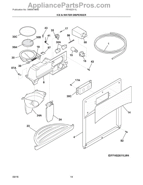 Parts for Frigidaire FFHS2311LBQA: 08 - Ice & Water Dispenser Parts