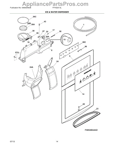 The Ice Chute Door Insulation is an OEM replacement part for Frigidaire refrigerators. It is installed on the ice chute door to prevent warm air infiltration and moisture buildup around the ice dispenser. Causes may include compression or cracking of insulating foam/material from normal use stress. Spills exposing it to liquid are also damaging. Symptoms of defective insulation consist of: