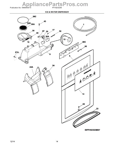 The Ice Chute Door Insulation is an OEM replacement part for Frigidaire refrigerators. It is installed on the ice chute door to prevent warm air infiltration and moisture buildup around the ice dispenser. Causes may include compression or cracking of insulating foam/material from normal use stress. Spills exposing it to liquid are also damaging. Symptoms of defective insulation consist of: