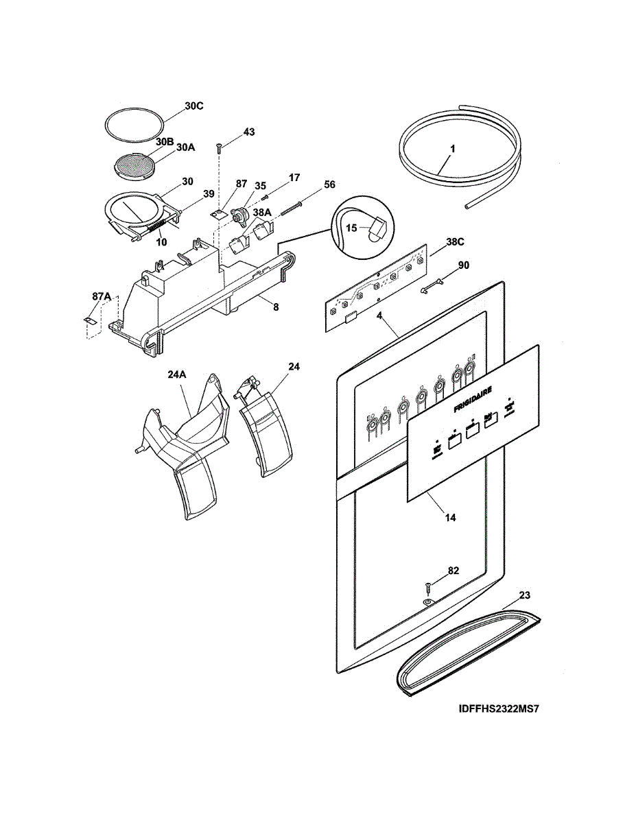 The Ice Chute Door Insulation is an OEM replacement part for Frigidaire refrigerators. It is installed on the ice chute door to prevent warm air infiltration and moisture buildup around the ice dispenser. Causes may include compression or cracking of insulating foam/material from normal use stress. Spills exposing it to liquid are also damaging. Symptoms of defective insulation consist of: