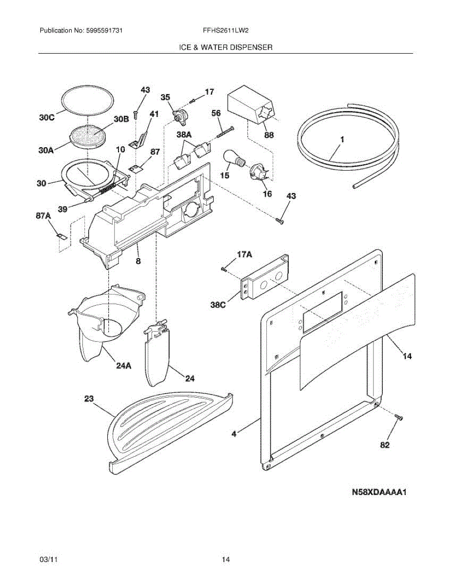 The Ice Chute Door Insulation is an OEM replacement part for Frigidaire refrigerators. It is installed on the ice chute door to prevent warm air infiltration and moisture buildup around the ice dispenser. Causes may include compression or cracking of insulating foam/material from normal use stress. Spills exposing it to liquid are also damaging. Symptoms of defective insulation consist of: