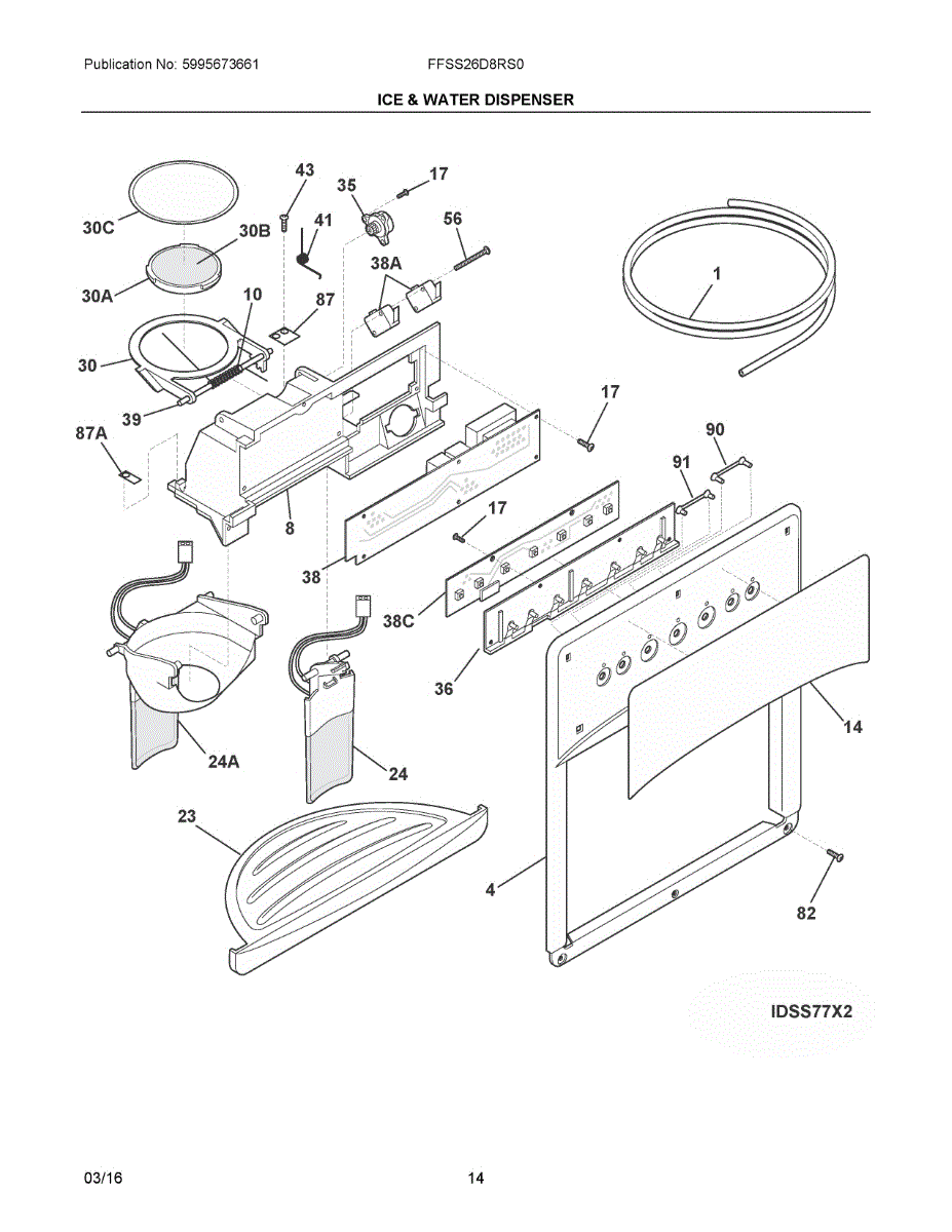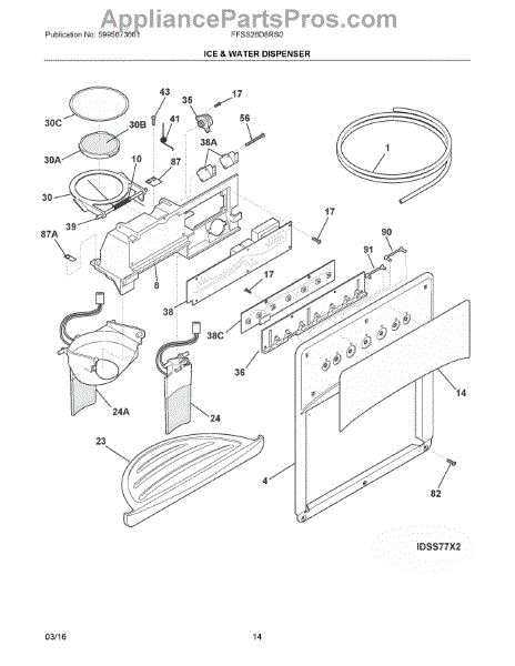 The Ice Chute Door Insulation is an OEM replacement part for Frigidaire refrigerators. It is installed on the ice chute door to prevent warm air infiltration and moisture buildup around the ice dispenser. Causes may include compression or cracking of insulating foam/material from normal use stress. Spills exposing it to liquid are also damaging. Symptoms of defective insulation consist of: